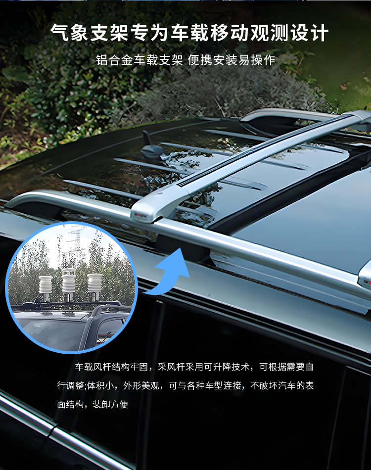車載氣象站——專門為移動(dòng)應(yīng)急環(huán)境而設(shè)計(jì)的一款綜合觀測(cè)自動(dòng)氣象站,集成了高精度傳感器和先進(jìn)的數(shù)據(jù)分析系統(tǒng),它能夠?qū)崟r(shí)監(jiān)測(cè)并準(zhǔn)確預(yù)報(bào)車輛行駛過程中的溫度、濕度、風(fēng)速風(fēng)向、氣壓、噪聲、太陽輻射及降水量等關(guān)鍵氣象數(shù)據(jù)、也可以測(cè)量PM2.5、PM10、CO、NO2、SO2、O3等氣體和顆粒物指標(biāo)。無論是在復(fù)雜的城市交通,還是在偏遠(yuǎn)的野外探險(xiǎn),車載氣象站都能為您的出行提供精準(zhǔn)、全面的環(huán)境信息。