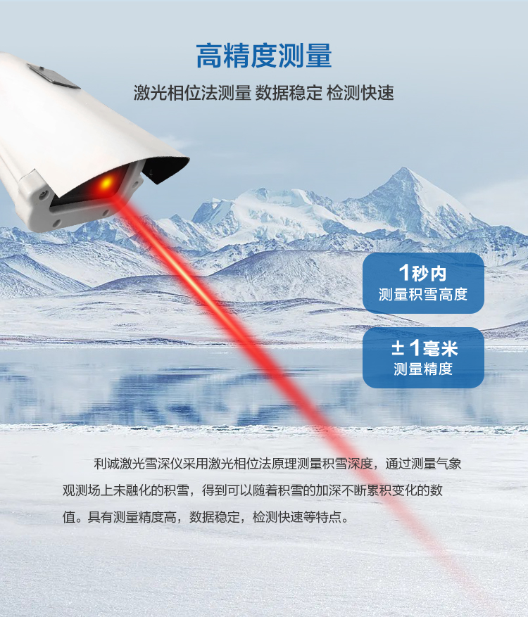 激光雪深儀采用激光相位法原理測量積雪深度,通過測量氣象觀測場上未融化的積雪,得到可以隨著積雪的加深不斷累積變化的數(shù)值。具有測量精度高,數(shù)據(jù)穩(wěn)定,檢測快速等特點(diǎn)。