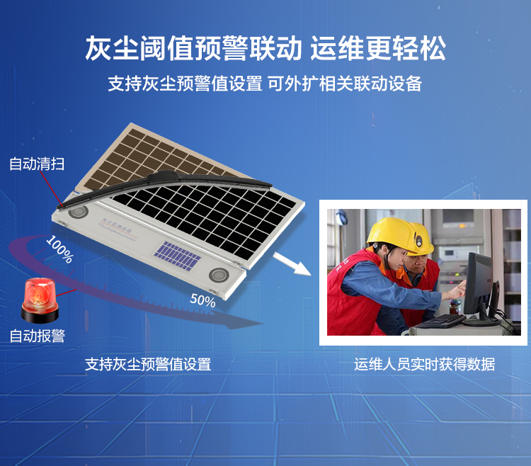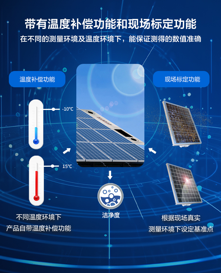 LC-HC1灰塵監(jiān)測系統(tǒng)主要用于太陽能發(fā)電場的光伏陣列中,安裝在光伏板的框架上。該系統(tǒng)能夠實時監(jiān)測電站表面的灰塵積累情況,通過智能化數據分析,為電站清潔維護提供科學依據。適用于各類規(guī)模的光伏電站,無論是大型集中式還是分布式電站,都能有效提升電站發(fā)電效率,降低運維成本,是光伏行業(yè)不可或缺的智能管理工具。