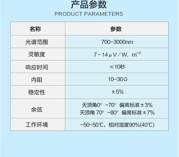 TBQ-JHW型近紅外輻射傳感器主要測(cè)量光伏范圍在700-3000nm之間的輻射值。其特點(diǎn)在于高精度測(cè)量、快速響應(yīng)以及出色的穩(wěn)定性,能夠精確捕捉并測(cè)量近紅外輻射的強(qiáng)度,為用戶提供準(zhǔn)確可靠的數(shù)據(jù)支持。該產(chǎn)品適用于多種領(lǐng)域,包括氣象觀測(cè)、環(huán)境監(jiān)測(cè)、工業(yè)過(guò)程控制等,幫助用戶實(shí)時(shí)監(jiān)測(cè)和分析近紅外輻射的變化,為科研、生產(chǎn)及決策提供有力依據(jù)。