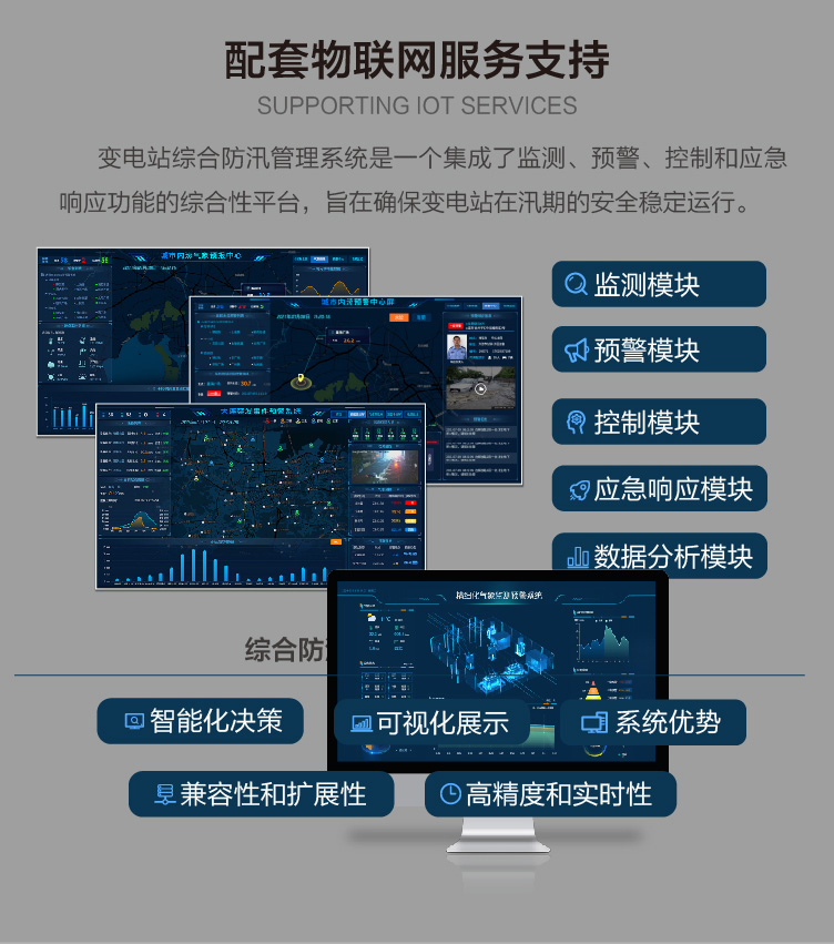 基于“構(gòu)建變電站防汛“四預(yù)”(預(yù)報、預(yù)警、預(yù)演、預(yù)案)體系”的提升耐汛能力要求,我們針對變電站存在特點、結(jié)合無人值守變電站狀態(tài)、不同級別變電站策略要求特提供以下策略針對無人值守 變電站、市重點變電站省重要節(jié)點(國級)變電站提供一體化抗洪抗?jié)辰鉀Q方案。