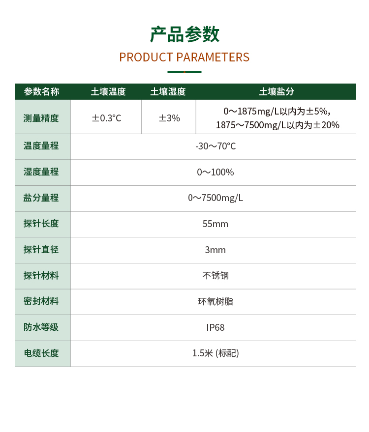 DC-TWS2土壤溫濕鹽傳感器是一款高精度、高穩(wěn)定性的監(jiān)測(cè)設(shè)備,能夠?qū)崟r(shí)測(cè)量土壤中的溫度和濕度,為農(nóng)業(yè)生產(chǎn)、園藝管理、環(huán)境科學(xué)等領(lǐng)域提供精準(zhǔn)數(shù)據(jù)支持。其應(yīng)用場(chǎng)景廣泛,如智能溫室、農(nóng)田灌溉系統(tǒng)、土壤修復(fù)項(xiàng)目中,它都發(fā)揮著至關(guān)重要的作用,幫助用戶實(shí)現(xiàn)精準(zhǔn)調(diào)控,優(yōu)化植物生長(zhǎng)環(huán)境,提高農(nóng)作物產(chǎn)量和質(zhì)量。
