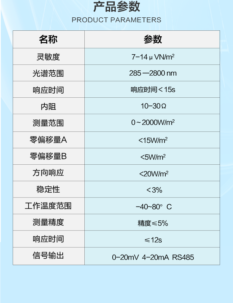 TBQ-2LJ總輻射傳感器(光電)是一種用于測量太陽輻射等電磁輻射的儀器。該表由一個光電二極管、一個濾光器和一個電路組成。在使用時,將儀器暴露在太陽下,太陽光經(jīng)過濾光器后照射在光電二極管上,產(chǎn)生電流信號,電路通過放大電流信號并計算即可得到總輻射值。該儀器廣泛應(yīng)用于氣象、農(nóng)業(yè)、環(huán)境等領(lǐng)域,用于測量太陽輻射、土壤表面輻射等指標,具有測量準確、數(shù)據(jù)處理方便等優(yōu)點。
